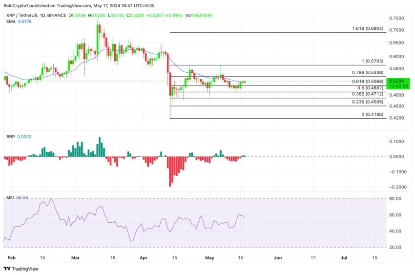 若当前趋势延续且积累增强,XRP价格或可上探0.53美元,进而挑战0.57美元。