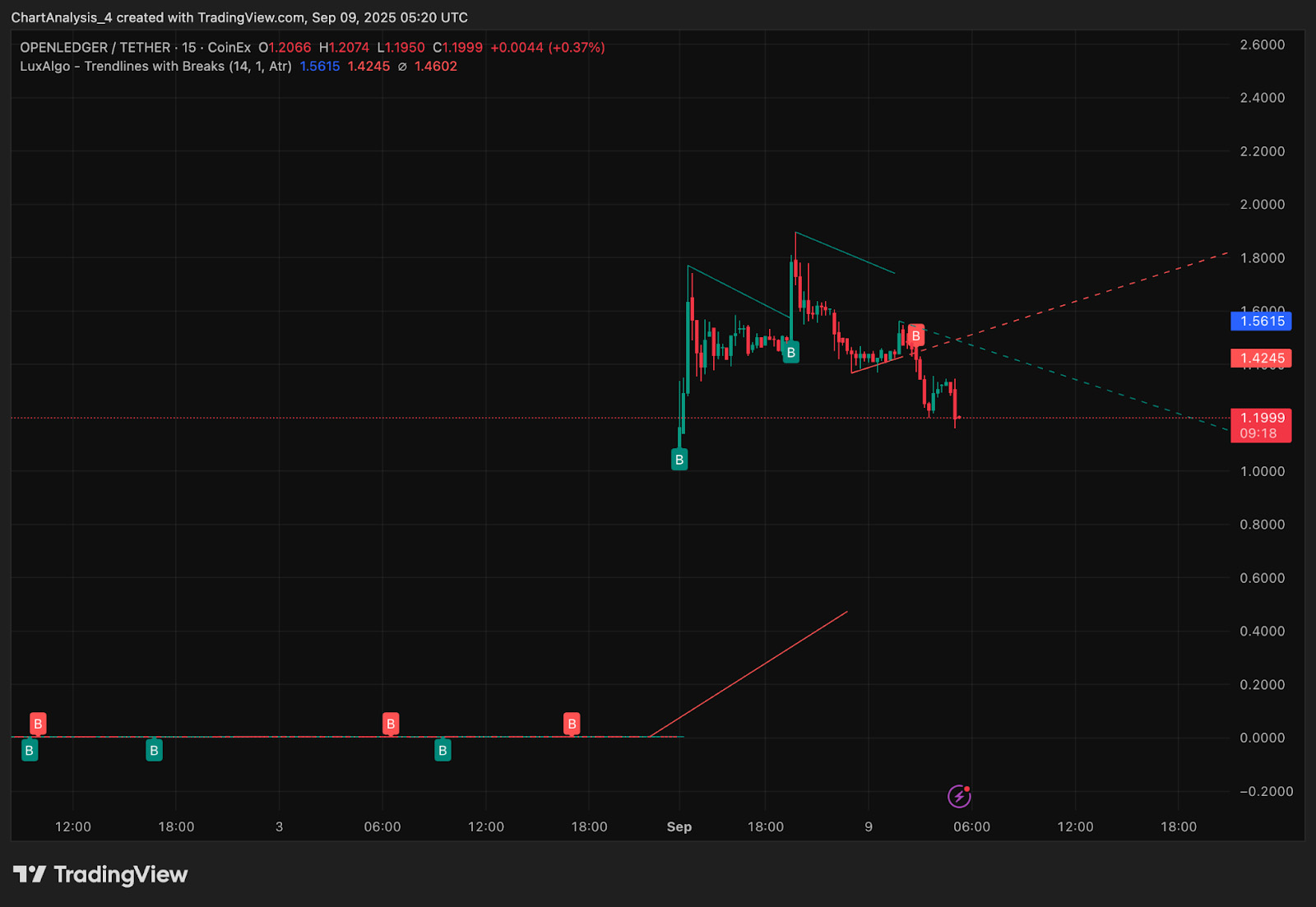 OPEN 现报 1.17 美元,企稳于 1 美元支撑位上方,波动后趋于平稳。若该支撑有效,2025年价格或上看1.80–2.00美元。