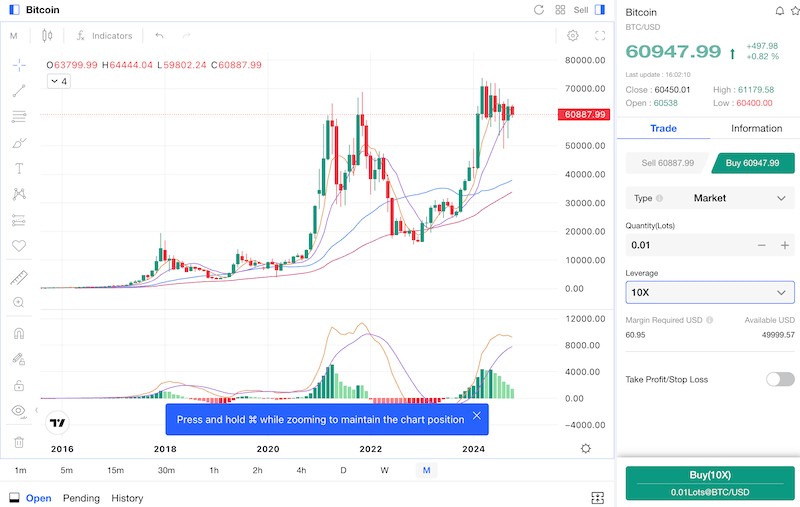 虚拟货币合约有不同种类,您只需选择交易平台开户,监控市场走势并在必要时进行交易。交易方式和现货交易基本差不多,因此可以参考上述的内容。操作的时候,需要注意在Mitrade是可以调节杠杆倍数、仓位大小、停损停利的。
