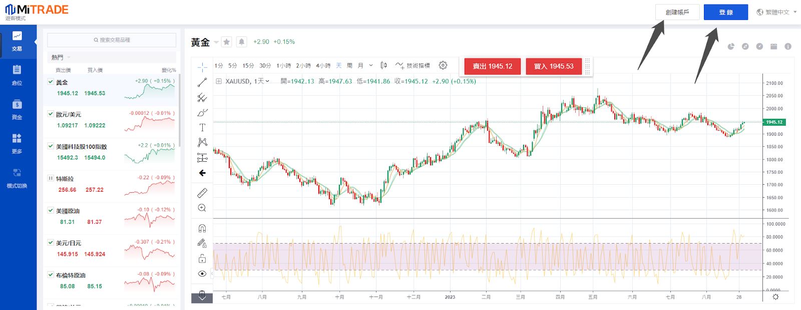 第一步:进入Mitrade官网,点击【创建账户】按钮进行注册。如果已经有账号,直接点击【登录】即可。