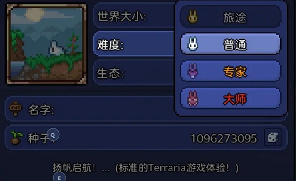 4、完整的世界规模选择 - 提供小型、中型、大型三种地图规格,与PC版本保持一致;现新增随机世界命名功能,并支持通过输入特定种子代码生成世界(部分隐藏彩蛋世界等你发现)。