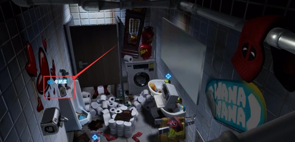 1、寻找死侍的超大黑色记号笔位置在光头特勤屋内的电脑桌上。