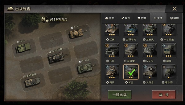 核心:布雷德利+ M270,布雷德利持续回复能量。M270释放大招时,其它战车增加能量。两辆战车都能辅助整个队伍的能量恢复。