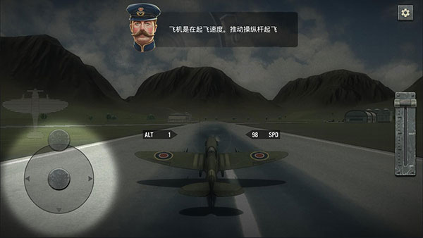 1、进入游戏之后,按照系统引导,我们开始了新手教程,这时候飞机正处于机场跑道上,我们将右边的拉杆推到顶,以达到起飞速度。