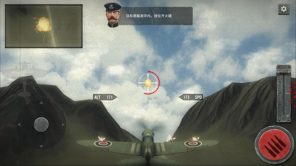 3、起飞不久,我们便碰到了入侵的敌人,这时候将瞄准环对准敌人进行射击,敌人被击落时,会在左上角出现一个小镜头,显示击落动画。