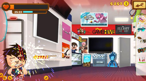 5、除了使用工具攻击,你还可以拖拽老板在房间内移动、将其头部撞向墙壁等。每次成功击打都会获得金币奖励,击败老板更能收获大量金币——这一设定充满趣味。老板在一段时间后还会复活,并换上新的造型等待你的再次挑战。