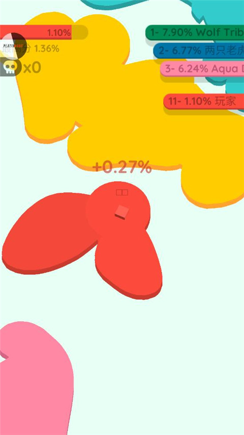 6、通过对战吞噬其他玩家,不断扩展自身领地,占据的面积越大,最终获得的分数也就越高。