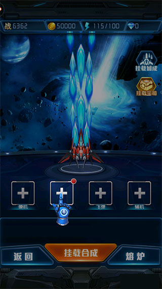 3、战机可通过升级、六大装备栏、四大挂载位以及神器和建造工厂等多种方式全面提升,打造独一无二的战斗外观与弹幕效果。