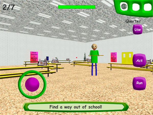 3、游戏中我们需要帮助巴尔迪在避开巴迪的同时收集满7本笔记本,然后逃出学校。
