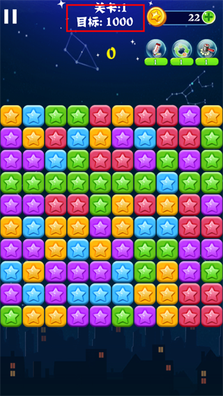 4、最后没有星星可以消除,并且分数达标后即可顺利通关。