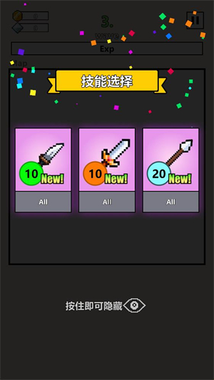 4、每次击中敌人都会获得经验值,当经验值满后就会升级,升级可以选择一项技能来强化自己。