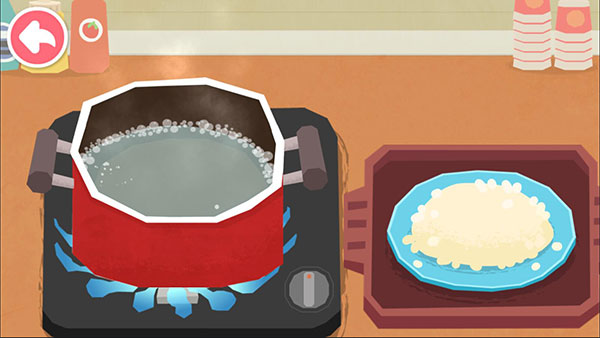 4、开始制作之后,会出现相应的厨具和食材,一般的话都是将食材放入厨具内,或者对食材进行一定的处理。