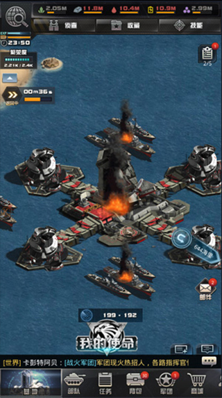 4、特色航母编队系统可搭载多兵种,搭配主动与被动技能,灵活改变战术策略。