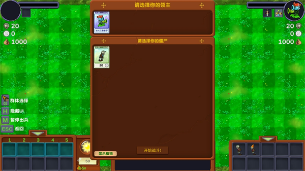 3、挑选你心仪的领主和炮兵类僵尸单位,组建小队准备迎战。