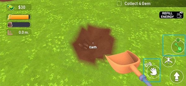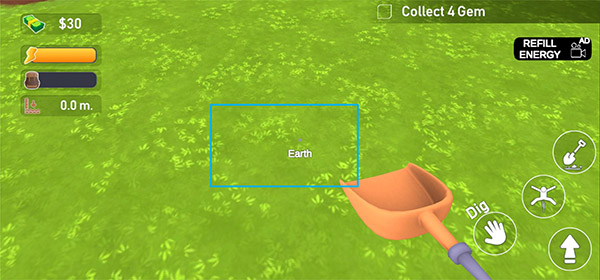1、当地面上出现“earth”标志时,即可开始挖掘。