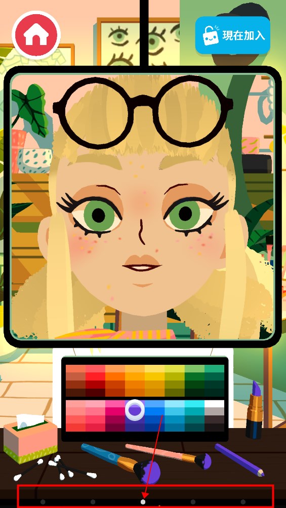 2、可以看到,游戏界面的最底下有一排白色的小点,它表示的是我们现在进行到了哪个步骤,想要进入化妆模式点击第三个点即可