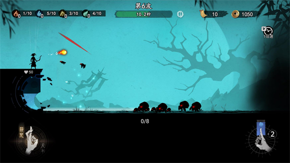 2、进入关卡后角色会自动攻击出现的敌人,怪物会陆续出现来攻击你的基地。