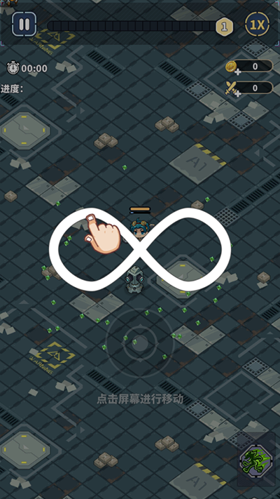 2、通过滑动屏幕来控制角色移动。