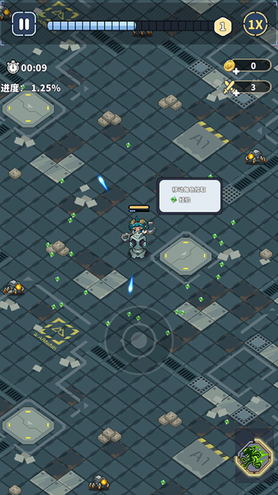 3、消灭敌人之后就会掉落绿色能量,捡取会增加经验值,经验值满了之后就可以选择技能了。