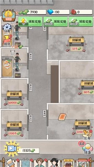 4、点击第四个按钮可以招募不同的员工,浴场的设施评分越高解锁的员工越多。