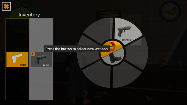 2、游戏界面的左侧是控制方向,右侧有多个操作按钮,包括攻击、射击、跳跃等,点击左上角可以更换武器。