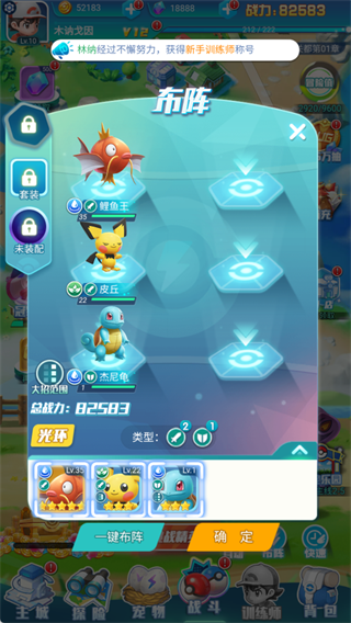 合理搭配精灵阵容,调整站位后点击【确定】即可生效,总战力会在下方实时显示。