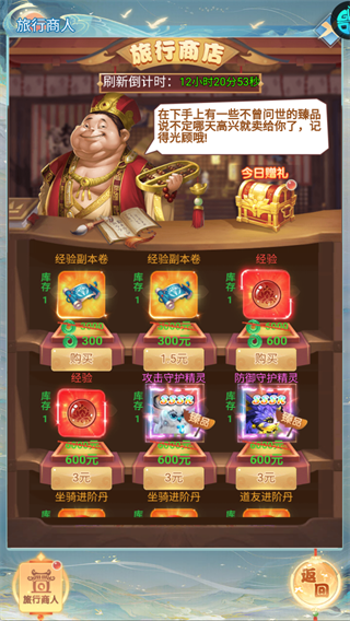 优先买经验副本卷快速升级,守护精灵、进阶丹等道具按需选购,资源别浪费。