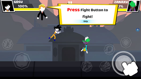 1、游戏操作十分简单,游戏中玩家只需要左手滑动方向按钮就可以控制玩家角色的移动方向,点击拳击按钮玩家角色将使用拳击攻击对方,点击下踢按钮就可以控制玩家角色使用腿攻击对方,点击大招按钮就可以释放一道激光能量去攻击对手。