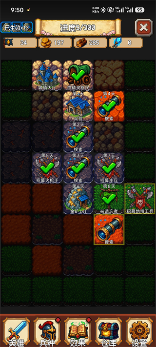 3、备战守塔决战,通过打野提升英雄等级解锁技能,收集地下城玥石挑战高难度副本获取资源,强化兵种与科技应对周期性对抗。