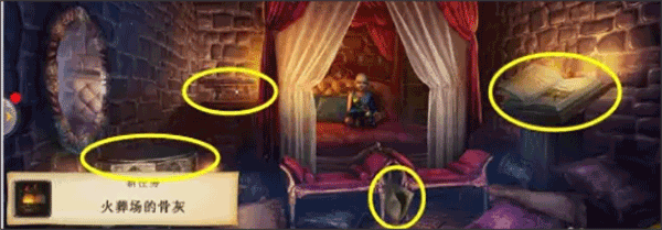 2、在右边的桌面拿到【毒药配方】、【油灯】和【钥匙】;