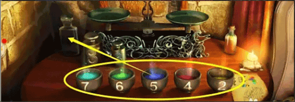 4、再点击左前方的桌面,把【毒药配方】放进去,进入小游戏:在天平、砝码和碗的帮助下,根据说明书测量配方的数量。