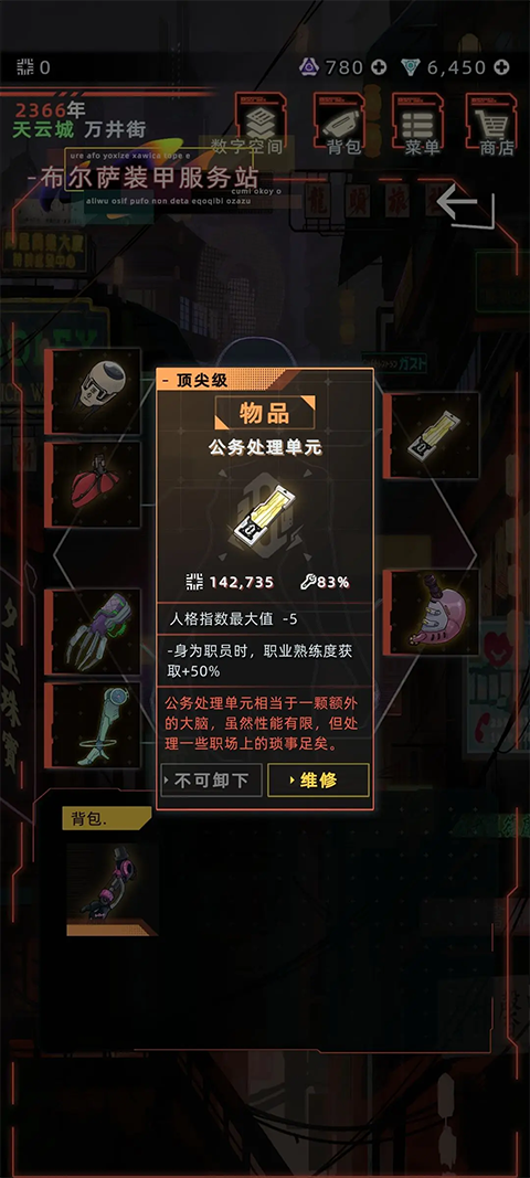 即使安装了辅助装置也会获得副作用‘亢奋’降低15点体能值与20点情绪值(下一年生效不会叠加)