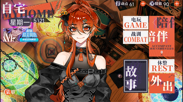 2、电玩可以增加心情值,战训可以增加战力,但是都会消耗行动点,行动点可以通过休整恢复。
