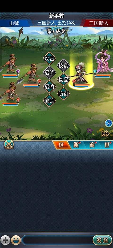 3、跟山贼进行战斗时,根据敌人的实力来点击中间的按键进行反抗;