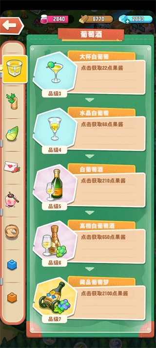酿葡萄酒很繁琐,你得有六级葡萄树,葡萄种子可以在神秘商店偶遇,也可以过关拿,钻石足够多的话,有些礼包能买到,活跃任务也有送。