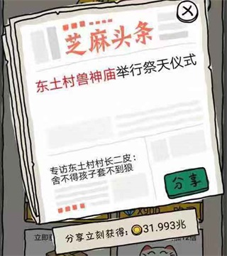 通过我的讲述和不时弹出的芝麻头条,你会慢慢了解芝麻镇和东土村发生的那些狗血故事。这些故事中出现了很多稀奇古怪的物品,你都可以在“收集”中得到。(啊,你的囤破烂之魂开始熊熊燃烧了吗?!)
