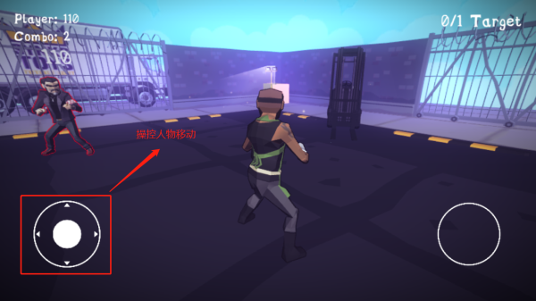 2、即可进入格斗场场地,玩家可以通过操控左侧按钮控制人物移动方向