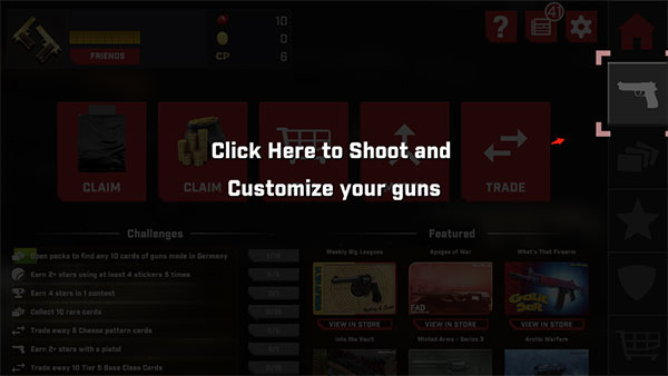 7、选择右边的【Shoot】图标可以实验你拥有的枪械。