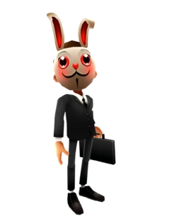 兔子面具遮住了容貌,黑色西装公文包的上班族装扮掩饰了技术黑客的身份。