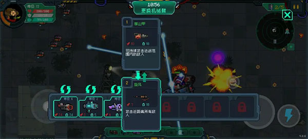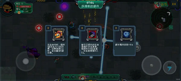 技巧:由于打BOSS的时间停止,如果boss房周围围了一圈小怪,红机甲初始武器(火箭筒)可以穿透左右两边的墙打掉小怪并吃零件(上下两边的不行)。给了我们时间限制以外的发育机会。