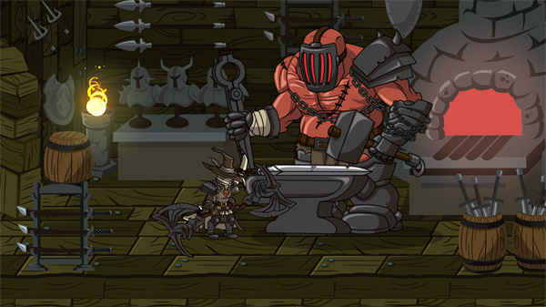 游戏角色的装备系统包括了铠甲位、主武器位、辅助武器位各一个,以及饰品位三个。而装备自然是具有多种多样的选择的,双剑、剑盾、大剑、大锤、大斧、武士刀、长矛等各种武器,有通过宝箱搜刮,也有通过商店购买,每种武器的伤害、消耗体力以及各自的连招都各有不同。