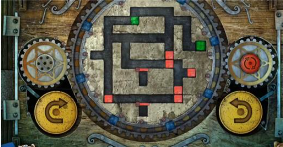2、将按钮装上后,在门的机关处可开启转动绿色方块的游戏。