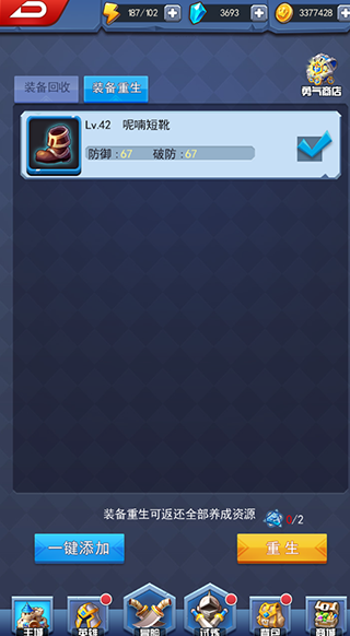 装备回收可以回收装备,回收装备之后可以获得相应数量的金币和勇气币。同时装备重生可以通过消耗装备重生石将已培养的装备进行回收返还全部的养成资源。
