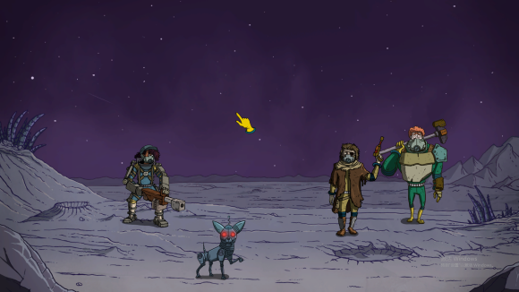 降落后等待犬吠剧情触发,然后探索地点中多出流水线,去流水线探索能带回破损的机械狗。几天后触发修理剧情,打火机、书、胶带随便选哪个都行(亲测均可),再过几天提示找零件,探索地点中多出墓地,去墓地或博物馆探索均能带回零件。接下来触发充电剧情,给电池即可。然后到达分支点,给机械狗装饰,这里一定要选智力。再过几天触发充能,会清空你的电力,然后要你派人出去,随便选一个即可。之后触发新飞船结局。