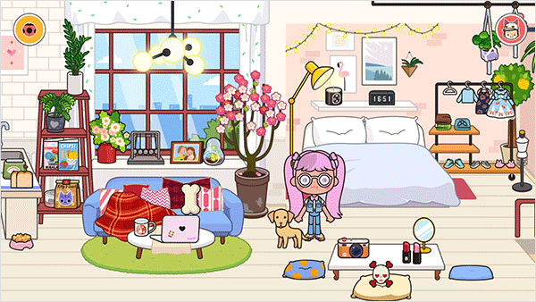 5、你可以和场景中的大部分物品进行互动,比如拖动换装;