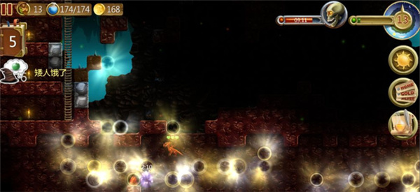 4、游戏中部分怪物会集结成群,试图掠夺矮人积攒的宝贵资源;另一些怪物则会通过传送门定期发动袭击。因此,玩家需要带领矮人构筑严密的防御体系,在堡垒周边的要道上布满陷阱与导弹塔,抵御一波波入侵的怪物大军。