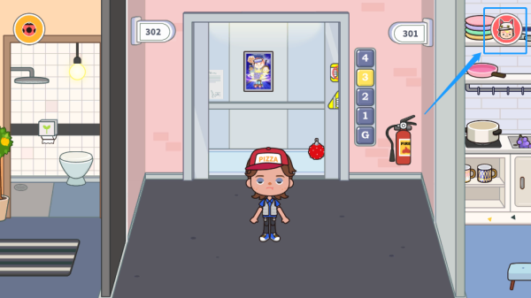 2、点击图示框出的任意位置都可以进入游戏主页面“公寓”,进行装修改造