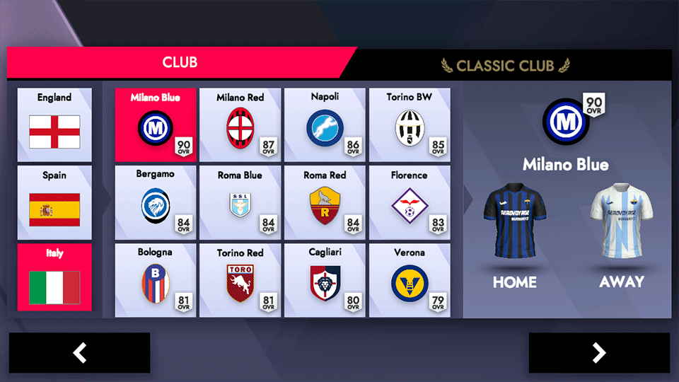 2、接着挑选喜欢的俱乐部,确认后点击右下角的足球图标进入设置界面。