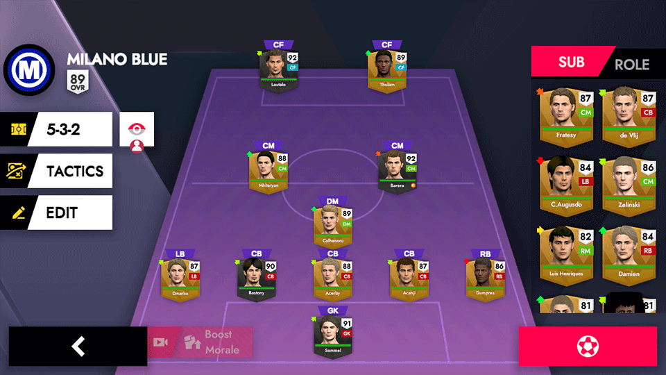 4、用高度自定的战术释放您的超级球员的全部球技,让您的足坛梦终于成真。