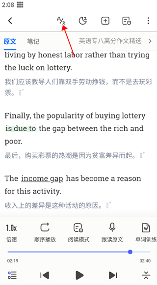2、点击下图所示按钮,然后关闭朗读译文即可。